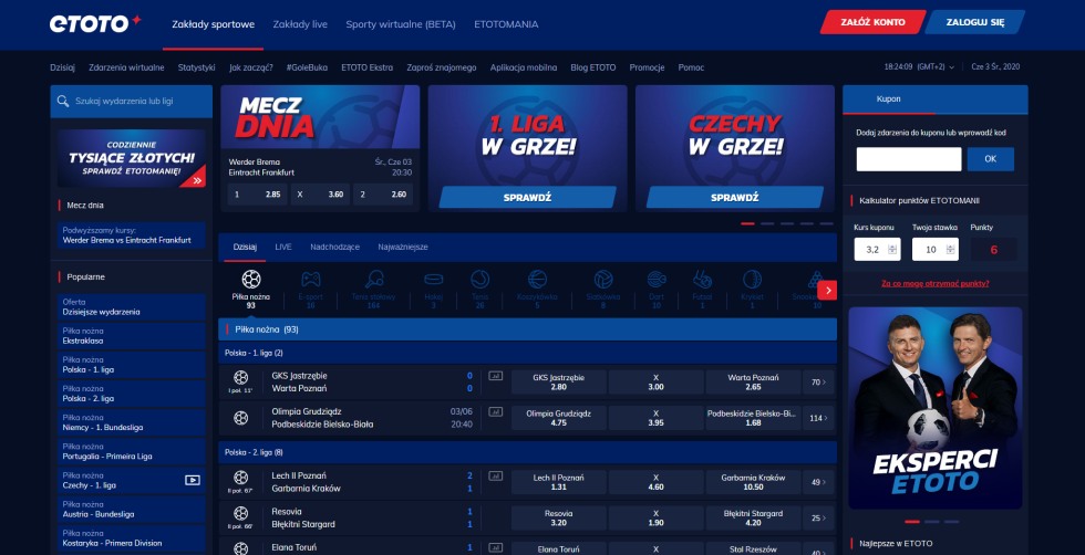 Kolejny świetny bukmacher, który istnieje na polskim rynku od 1997 roku. Wysokie kursy, transmisje live i szeroka oferta e-sportów to jego główne zalety.